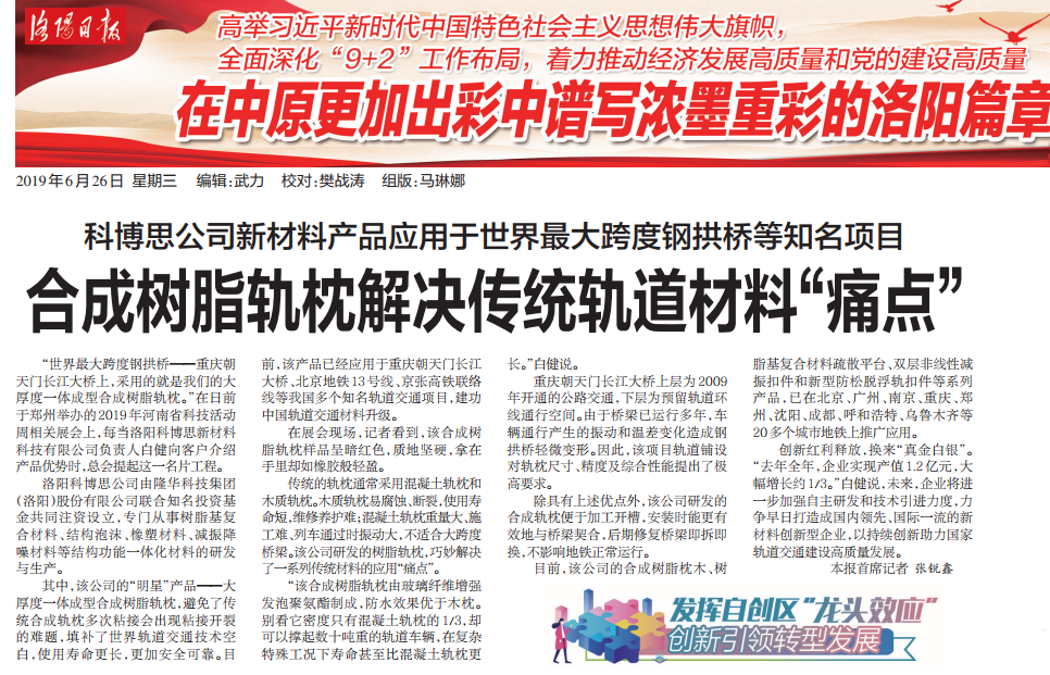 官宣:合成樹(shù)脂軌枕解決傳統(tǒng)軌道材料“痛點(diǎn)”-----洛陽(yáng)科博思新材料科技有限公司接受《洛陽(yáng)日?qǐng)?bào)》專訪