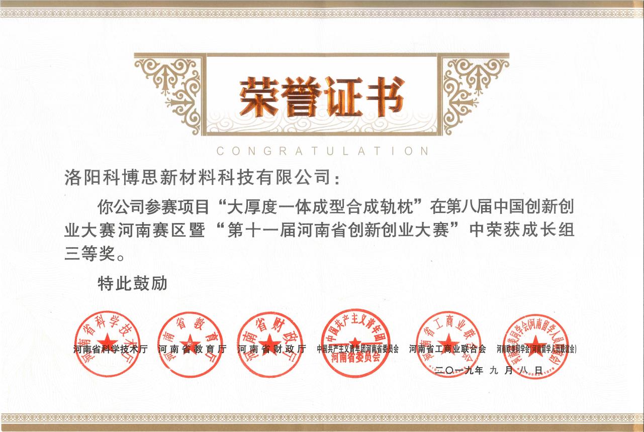 科博思新材榮獲‘第八屆中國創(chuàng)新創(chuàng)業(yè)大賽河南賽區(qū)’三等獎