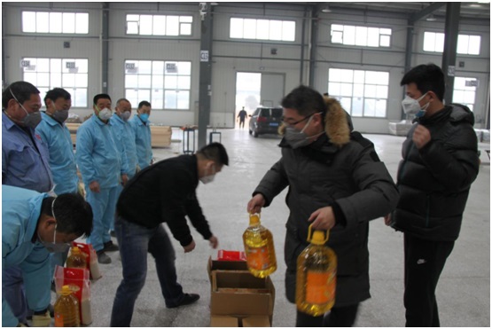 2020年1月26日(正月初二),總經(jīng)理劉玉峰、常務(wù)副總經(jīng)理王勇在總經(jīng)理助理李帥旗和企業(yè)管理部相關(guān)人員的陪同下,先后到公司宜陽和孟津產(chǎn)業(yè)基地生產(chǎn)車間慰問了春節(jié)期間仍奮戰(zhàn)在生產(chǎn)和保障一線的員工,向加班員工致以節(jié)日的問候和誠摯的祝福,并送去了慰問品。
